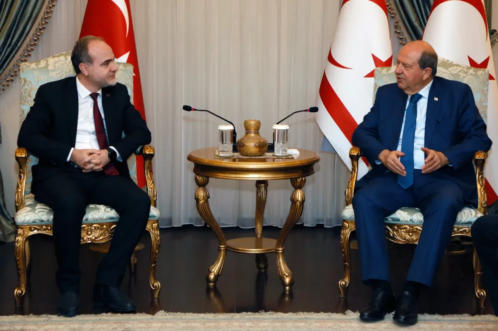 Rektörümüz Prof. Dr. Hasan Uslu, KKTC ziyareti kapsamında Cumhurbaşkanlığına da bir ziyaret gerçekleştirerek, burada Cumhurbaşkanı Ersin Tatar’a Üniversitemizin akademik hedeflerini ve Yavru Vatan üniversiteleriyle yürütülecek iş birliklerini sundu. Cumhurbaşkanı Tatar ziyarette, eğitimli genç nesillerin KKTC’nin en büyük gücü olduğunu belirterek, “Anavatan Türkiye ile bilim, eğitim ve kültürel alanlarındaki iş birliklerimiz, varlık mücadelemize katkı sağlıyor.” dedi. Üniversitemizin ziyaretinden ve Yavru Vatan Kıbrıs’taki yükseköğretim kurumlarıyla yeni iş birlikleri kurma çalışmalarından duyduğu memnuniyeti ifade eden Cumhurbaşkanı Tatar, Rektörümüz Uslu’ya teşekkür etti.