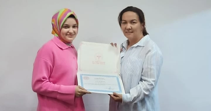 Programı başarıyla tamamlayan sağlık çalışanlarına katılım belgeleri takdim edildi.