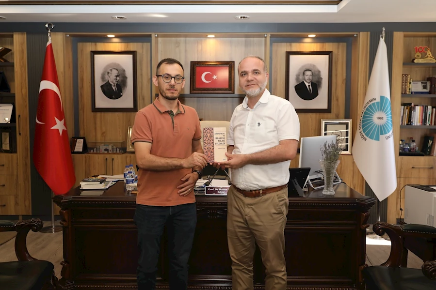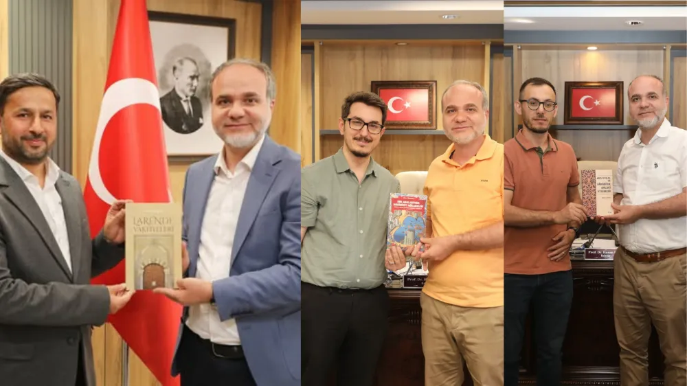Bu kapsamda, İslami İlimler Fakültesi Araştırma Görevlisi Dr. Ahmet Gümüştop, Araştırma Görevlisi Mahmut Yıldız ve İnsan ve Toplum Bilimleri Fakültesi Araştırma Görevlisi Emre Kaymakçı, Rektör Prof. Dr. Hasan Uslu’yu makamında ziyaret ederek, kaleme aldıkları eserleri takdim ettiler.