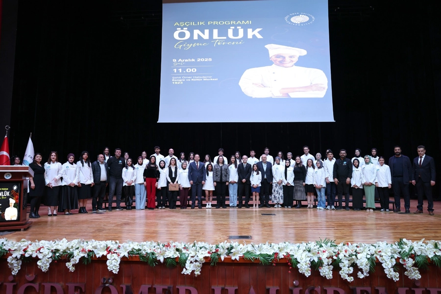 İsterseniz haber metnini de bu kısa başlık ve spota uygun şekilde daha öz ve akıcı hâle getirebilirim.Niğde Ömer Halisdemir Üniversitesi Sosyal Bilimler Meslek Yüksekokulu Aşçılık Programı öğrencileri, Şehit Ömer Halisdemir Kongre ve Kültür Merkezi’nde düzenlenen Önlük Giyme Töreni ile beyaz önlüklerini giyerek meslek hayatına ilk adımlarını attı.