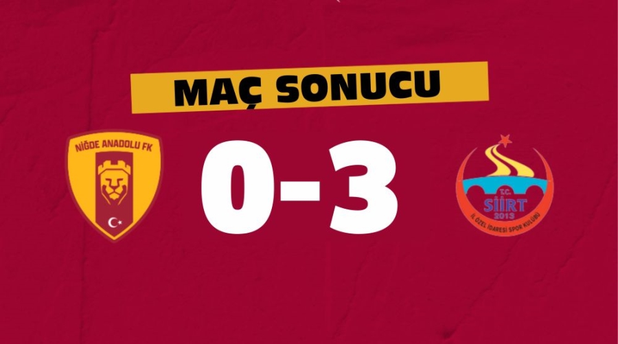 TFF (Türkiye Futbol Federasyonu) 3. Lig 3’üncü grupta mücadele eden temsilcimiz Niğde Analolu FK, evinde konuk ettiği Siirt İl Özel İdaresi Spor’a farklı mağlup oldu.
