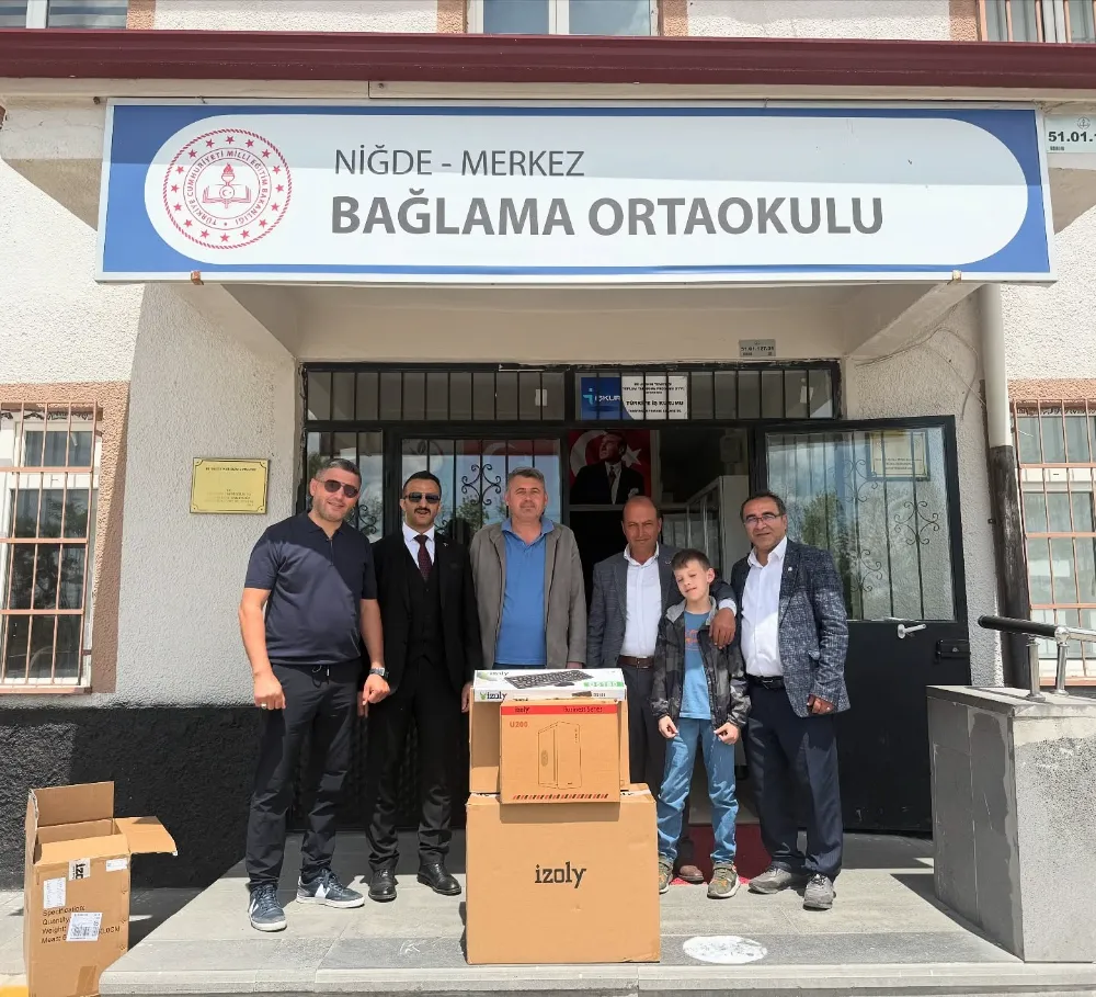 Okul Müdürü Selçuk Öztürk ve Cumhuriyet Mahallesi Muhtarı Bayram Erdoğan tarafından Niğde-İstanbul Bağlamalılar Sosyal Yardımlaşma Dayanışma ve Kültür Derneği (İSBAĞDER) yönetimine iletilen bilgisayar ihtiyacı, Akkoç tarafından hızlıca temin edildi.