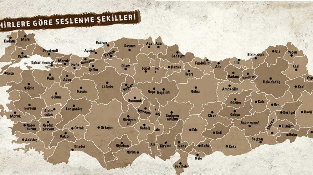 Türkiye’nin her bir bölgesi ayrı bir kültürü yansıtıyor. Sosyal medyada yer alan ‘mzt’ adlı sayfa illere göre vatandaşların birbirine seslenişleriyle ilgili bir harita yayınlandı. Yayınlanan haritaya göre Niğde’de vatandaşlar birbirine ‘Bahale’ diye seslenirken, komşumuz Nevşehir’de birbirine “Topraam”, Kırşehir’de ‘Bacanak’, Aksaray’da ‘Nörüyon gı” ve Kayseride “Gadasını aldığım” diye hitap ediyorlar.