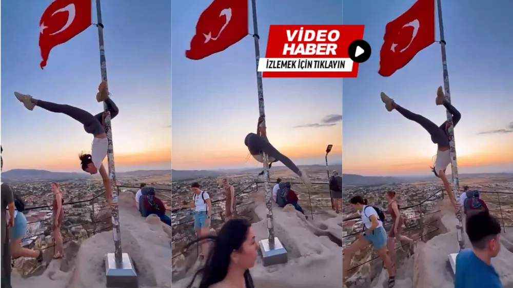 UNESCO Dünya Kültürel ve Doğal Mirası Listesi'nde yer alan Kapadokya bölgesinin önemli destinasyonları arasında yer alan Uçhisar Kalesi'nin zirvesinde yabancı bir turist, Türk bayrağı direğine uygunsuz hareketlerde bulundu.