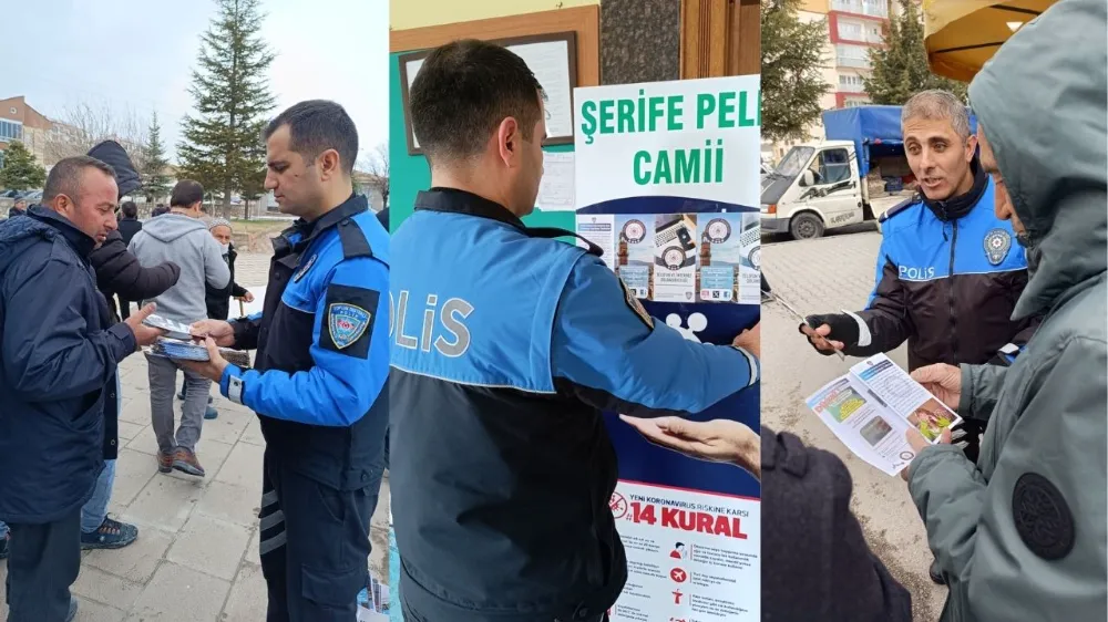 Konu hakkında yapılan açıklamada, “ “Telefon ve İnternet Yoluyla Dolandırıcılık” çalışması kapsamında; Şerife Pelit Camisi Cuma Namazı çıkışında (1.000) vatandaşlarımıza yönelik olarak, “İnternet üzerinden satış yapılan sitelerdeki sahte ilan ve linklere dikkat etmeleri, 2. El satışı yapılan ürünlerin fiziki olarak teslim alınmadan para havalesi yapılmaması, tanımadıkları numaralardan cep telefonlarına gelen çağrı ve mesajları dikkate almamaları, Polis Jandarma, Savcı veya herhangi bir kamu personelinin kati surette para talep etmeyeceği” konularında bilgilendirme ve bilinçlendirme faaliyetinde bulunularak broşür dağıtımı yapılmıştır.