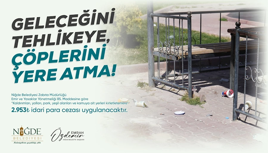 Niğde Belediyesi’nden yapılan son uyarıda, çevreyi kirleten kişi ya da kişiler hakkında hiçbir istisna gözetilmeksizin cezai işlemlerin uygulanacağı ifade edildi. Açıklamada, “Çevre kirliliği konusunda bu, son uyarımızdır” denilerek, vatandaşlardan ortak yaşam alanlarına sahip çıkmaları istendi.