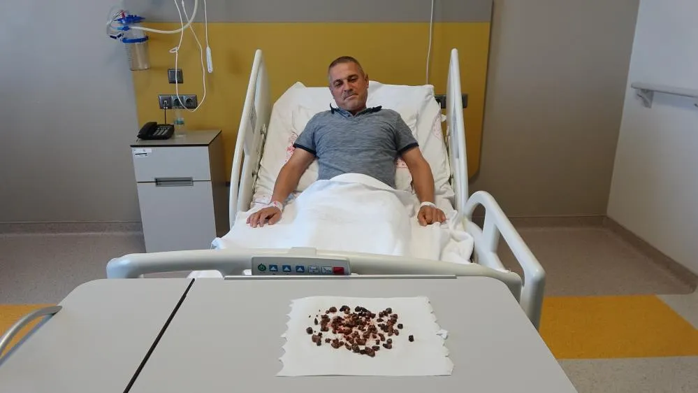 Akdağmadeni ilçesinde yaşayan Serhat Evran doktorları bile şaşırtan sağlık problemiyle karşı karşıya kaldı. Şiddetli böbrek ağrısı şikayetiyle Yozgat Şehir Hastanesi’ne başvuran Evran’ın detaylı tetkiklerinin yapılmasının ardından böbreğinde 100 taneye yakın taş tespit edildi.