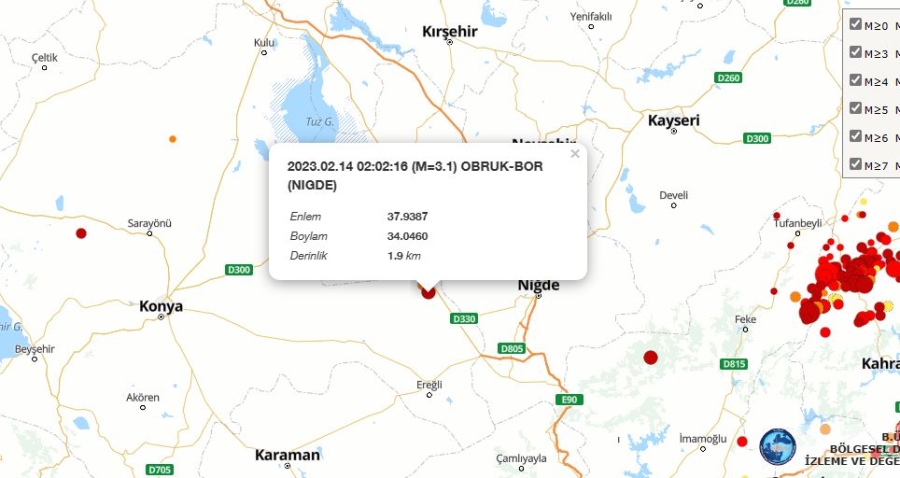 Boğaziçi Üniversitesi Kandilli Rasathanesi ve Deprem Araştırma Enstitüsü Bölgesen Deprem İzleme ve Değerlendirme Merkezi verilerine göre Niğde’nin Bor İlçesi Obruk Köyünde ilk sarsıntı 14.02.2023 Saat: 02:02:26’da 3,1 şiddetinde, ikinci sarsıntı 14.02.2023 Saat 03:05.40’da 2,3 şiddetinde ve son olarak ise 14.02.2023 Saat: 05:41:14’de 1,7 şiddetinde sarsıntı meydana geldi.