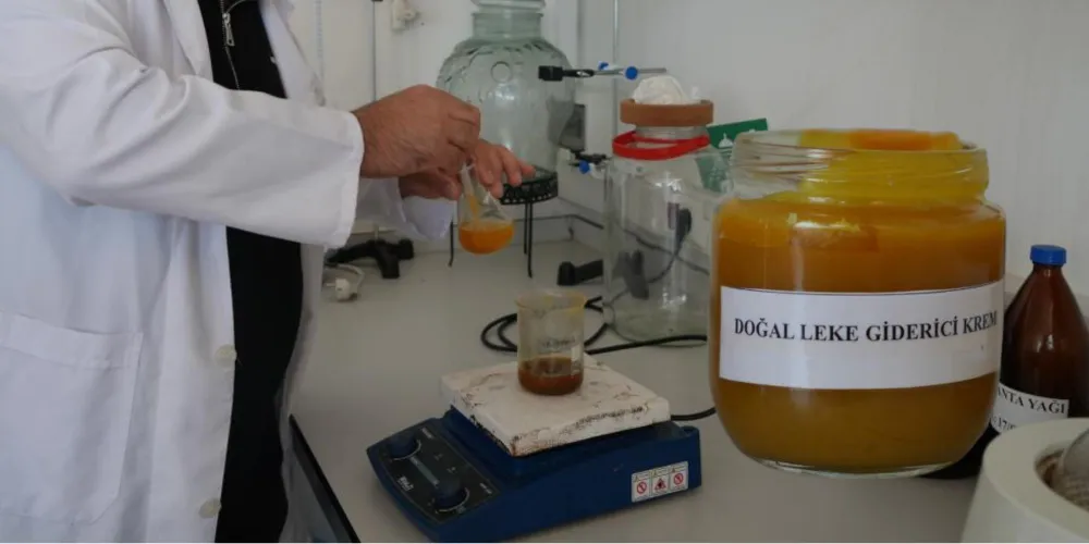 Iğdır Üniversitesi Araştırma Laboratuvarı Uygulama ve Araştırma Merkezi sorumlusu Öğretim Görevlisi Musa Karadağ, Ağrı Dağı florasına özgü bitkilerden katma değeri yüksek ürünler geliştirmeyi amaçladıklarını belirterek, "Üniversitemizin katma değerli ürünler alanında ihtisaslaşması ile beraber biz de tarımsal ve hayvansal ürünlerin bir araya getirilmesi ile katma değeri yüksek kozmetik, endüstriyel, sağlık ve gıda ürünlerine dönüştürülmesini gerçekleştirmekteyiz. Bugün de daha önce üzerine çalıştığımız farklı projelerimizde olduğu gibi bundan da yine hayvansal ve bitkisel ürünlerden yola çıkarak katma değeri yüksek bir leke giderici, doğal leke giderici krem ürettik. Bu kremin ana yapısında sadece Iğdır Üniversitesi'nin 1250 rakamında yetiştiriciliğini yaptığımız arılardan elde ettiğimiz baldan, bal mumundan ve zerdeçal gibi bitkilerin bir araya getirilmesiyle zeytinyağıyla harmanlayarak biz bunu bir katma değerli ürüne dönüştürdük. Gönüllü arkadaşlar üzerinde denemeler yapıldı. Özellikle güneş lekeleri, doğum lekeleri ve işte kansere yol açabilecek birçok lekenin üzerine denendiği ve olumlu etkiler olduğunu gördük. Bu çalışmayı biz biraz daha özenli bir şekilde araştırma çalışması olarak gerçekleştirdik. Bunu tabii ki üniversitemizin bünyesine kazandık. İleriki süreçte bunu daha farklı, daha profesyonel bir şekilde katma değerli ürün olarak üniversite bünyesinde inşallah daha güzel bir şekilde sunmayı hedefliyoruz" dedi.
