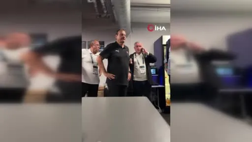 Cumhurbaşkanı Erdoğan, "Gerçekten çok çok mutlu olduk. Bize bu mutluluğu yaşattığınız için başta siz, Hidayet, bütün sporcu kardeşlerimin gözlerinden öpüyorum. Tebrik ediyorum, sağ olun var olun" derken, milli oyuncular da alkışla karşılık verdi.