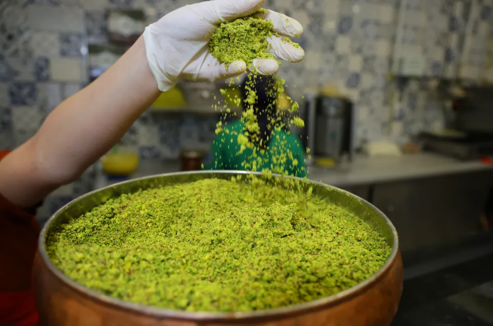 Baklava ustası Zeynep Geyik: " Maalesef son dönemlerde tatlı yaparken hileleri de artmaya başladı; yer fıstığını, bezelyeyi veya ıspanağı artık makinede öğütüyorlar ve gıda boyası ile boyayıp kullanıyorlar"