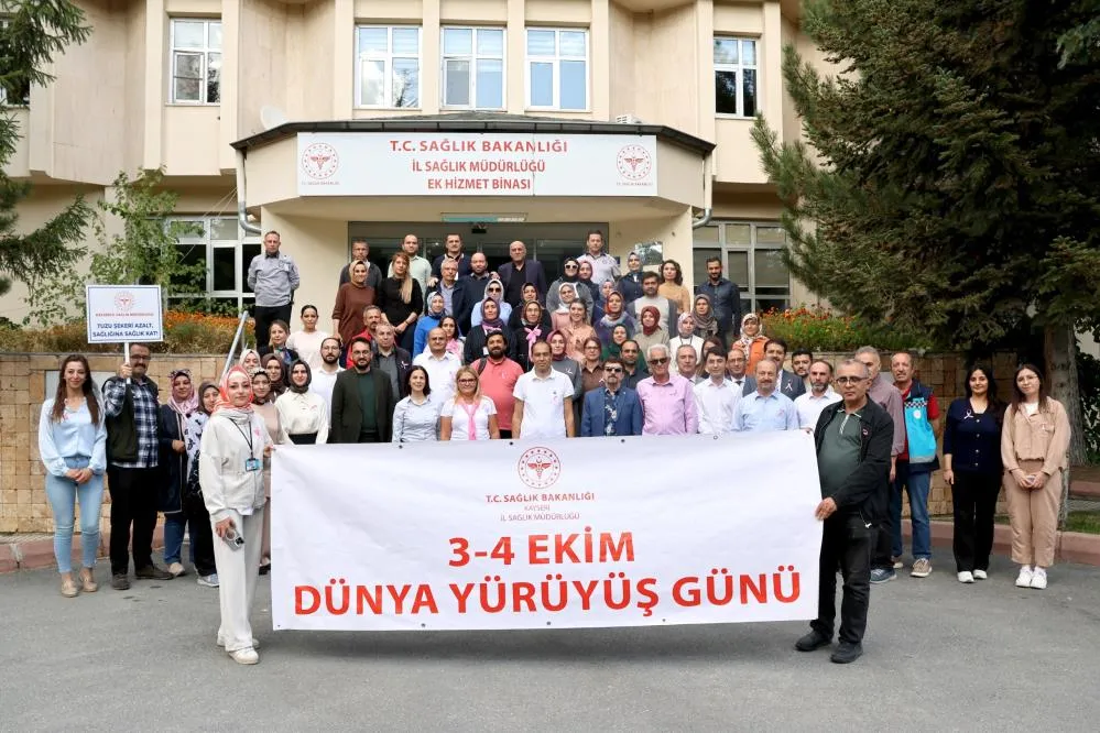 İl Sağlık Müdürü Dr. Mehmet Erşan’ın yanı sıra sağlık müdürlüğü yöneticileri ve sağlık personelinin katılımıyla gerçekleşen etkinlikte, fiziksel aktivitenin bireylerin sağlığı üzerindeki olumlu etkilerine vurgu yapıldı. Yürüyüşün ardından açıklamalarda bulunan Halk Sağlığı Hizmetleri Başkanı Uzm. Dr. Duygu Horoz; "Teknolojide yaşanan gelişmeler, masa başı işlerin artması ve hareketli yaşamın giderek azalması bizi her geçen gün daha da hareketsizleştiriyor. Oysa hareket etmek birçok kronik hastalığın önüne geçme noktasında çok önemli bir aktivite. Günde en az yarım saat yürümek sağlıklı yaşam için önemli. Bizlerde sağlıklı yaşama dikkat çekmek maksadıyla tüm mesai arkadaşlarımızla yürüyüş yaptık. Aynı zamanda ekim ayının meme kanseri farkındalık ayı olması münasebetiyle pembe renklerde kurdele takarak farkındalık oluşturmak istedik. Bu vesileyle 40-69 yaş arası tüm kadınları ilimizde hizmet sunan 9 adet sağlıklı hayat merkezimize mamografi çektirmeleri için davet ediyoruz" dedi.