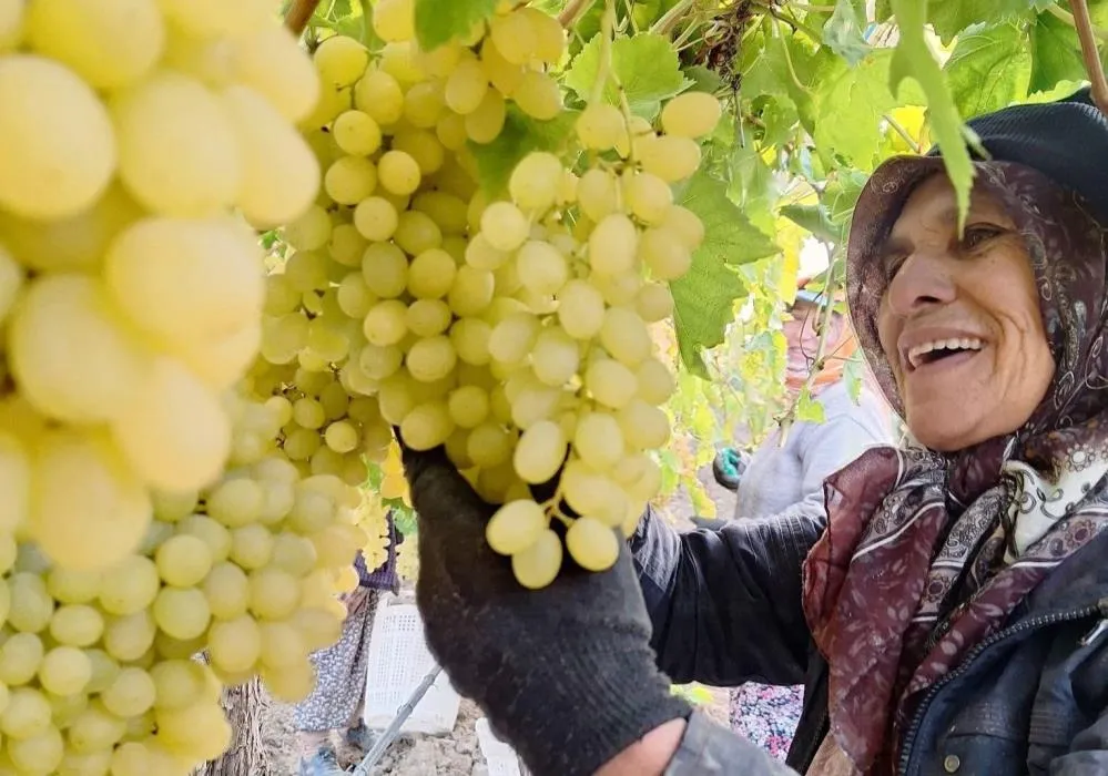 Manisa'nın Sarıgöl ilçesinde ekim ayının sonlarına gelinmesine rağmen örtü altındaki üzümlerin hasadı hız kesmeden devam ediyor. Kadın işçiler, yağmur çamur demeden çalışarak emekleriyle geçimlerini sağlamayı sürdürüyor.