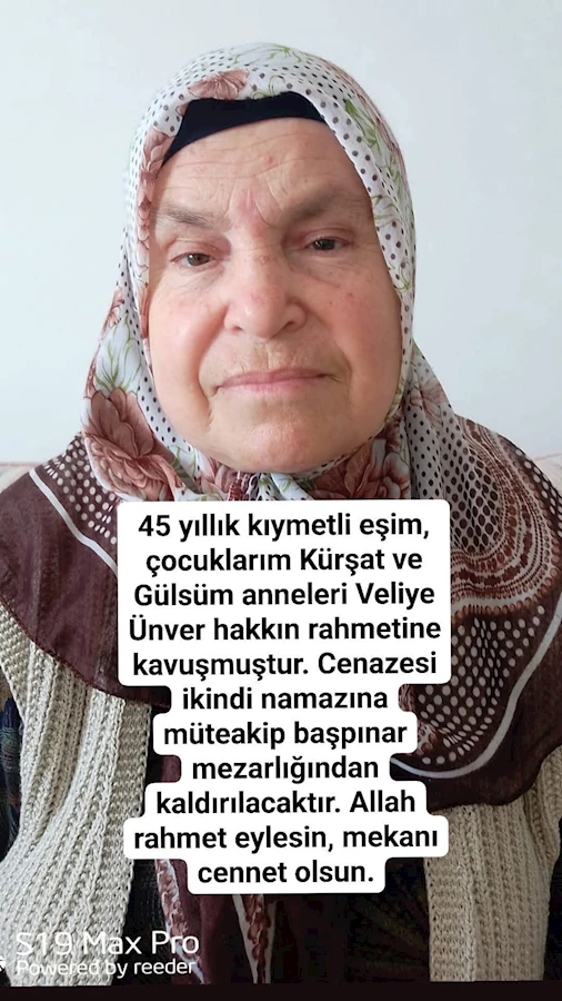 51 Haber Gazetesi Kurucusu, değerli gazeteci İsmet Ünver’in kıymetli eşi Veliye Ünver, geçirdiği ani rahatsızlık sonucu tedavi altına alındığı hastanede hayatını kaybetti.
