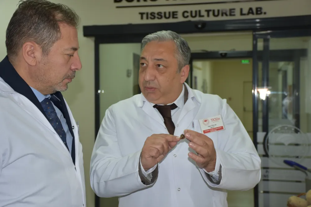 Tarımsal Araştırmalar ve Politikalar Genel Müdürü Dr. Mustafa Altuğ Atalay ve Tarla Bitkileri Araştırmaları Daire Başkanı Suat Yılmaz daha sonra Türkiye’de ilk olarak havada (aeroponik), suda (hidroponik) ve topraklı ortam olmak üzere 3 ayrı üretim sisteminin bulunduğu enstitünün mini yumru üretim tesisini gezdi. Havada denilen aeroponik sistemde bitki başına yaklaşık 100-150 mini yumru üretimi sağlanmakta, suda denilen hidroponik yöntemde ise bitki başına yaklaşık 50-60 mini yumru üretimi gerçekleştiriliyor.