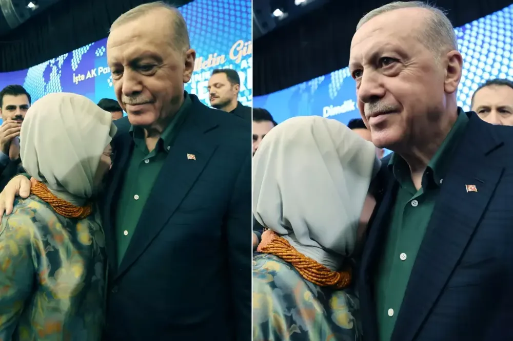 Cumhurbaşkanı Erdoğan'ın konuşması sırasında en dikkat çeken anlardan biri ise eşi Emine Erdoğan'ın gözyaşlarına boğulması oldu. Salondaki duygu seline eşlik eden Emine Erdoğan, konuşma sonunda eşine sarılarak omzunda ağladı. O anlar hem salonda bulunanları derinden etkiledi.