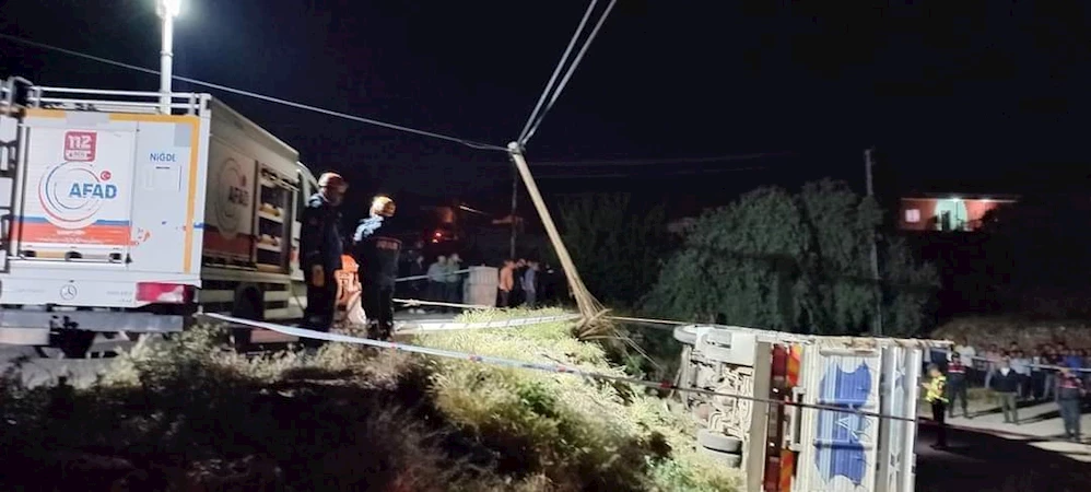 Kamyonet devrildi, içerisinde biri çocuk iki kişi hayatını kaybetti. Dün gece saatlerinde Niğde merkeze bağlı Kömürcü Köyü'nde kamyonetin yoldan çıkarak devrilmesi sonucu araç içerisinde bulunan biri çocuk iki kişi hayatını kaybetti. Kazayı gören çevredeki vatandaşlar durumu 112 ekiplerine bildirdi. Olay yerine AFAD, Jandarma, İtfaiye ve 112 ekipleri sevk edildi. Olay yerine gelen ekipler biri çocuk iki kişinin öldüğünü belirlerken jandarma ekipleri ise olayla ilgili soruşturma başlattı.