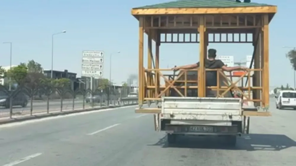 Ankara Caddesi'nde seyir halinde olan bir kamyonetin kasasında trafik kuralları hiçe sayılarak taşınan kamelya, bir vatandaşın cep telefonu kamerasına yansıdı. Trafikte ilerleyen kamyonetin kasasında bulunan kamelyada oturan vatandaşın parkta gibi rahat bir şekilde oturduğu dikkatlerden kaçmadı. Kamyonetin kasasındaki kamelyada oturan vatandaşı görenler ise 'kamyonet kasasında kamelya keyfi' yorumunda bulundu.