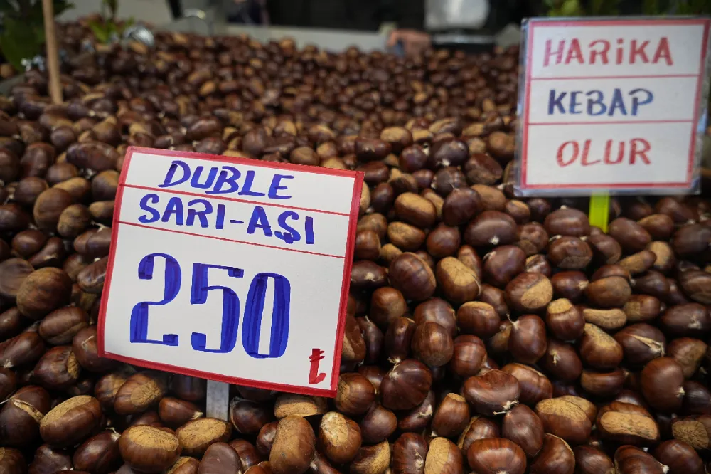 Pişmiş kestanenin kilosunu 500 liraya müşterilerine sunan Yusuf Ergün, çiğ kestaneyi ise kilosunu 250 liradan satıyor.
