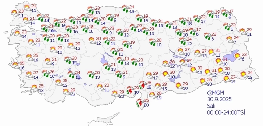 Niğde’de 29 Eylül Pazartesi günü hava sıcaklığının 26 derece olması beklenirken, 30 Eylül Salı günü ise yağışla birlikte hava belirgin şekilde serinleyecek ve en yüksek sıcaklık 21 derece civarında olacak. Çarşamba ve perşembe günleri yeniden güneşli ve parçalı bulutlu bir havanın hâkim olması beklenirken sıcaklıklar 20 ila 22 derece civarında kalacak.