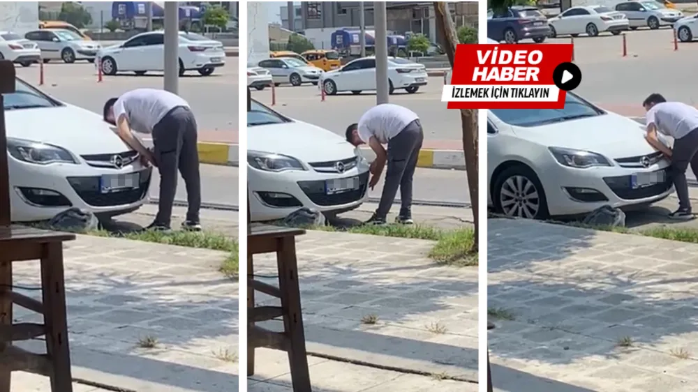Adana'da uyuşturucu bağımlısı olduğu öne sürülen bir kişi, otomobilin kaputuna yaslanıp değişik hareketler sergiledi.