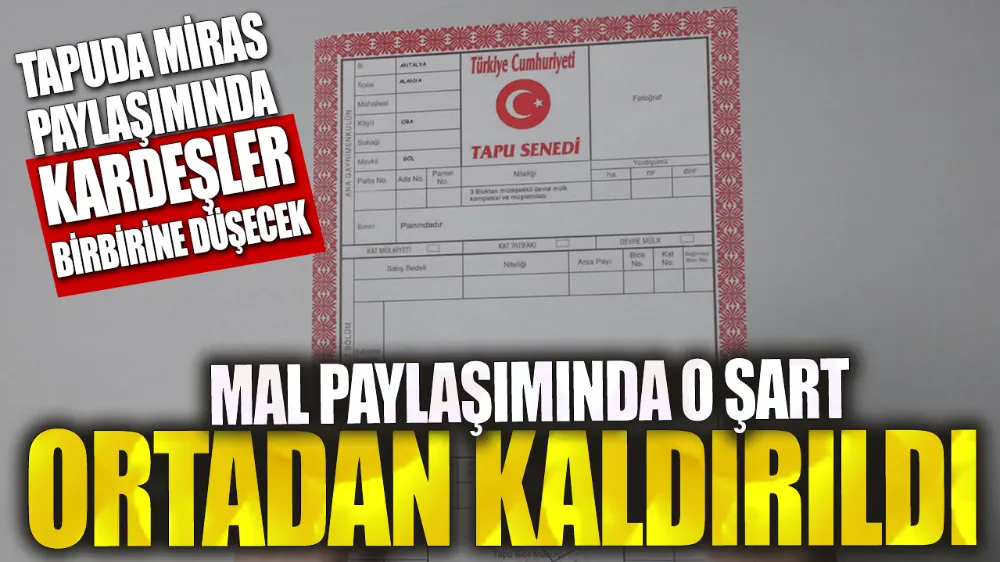 Kardeşler arasındaki miras paylaşımında meydana gelen bir değişiklik, miras kalan varlıkların kardeşlere devredilme sürecini hızlandırdığı ifade ediliyor.