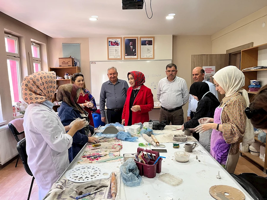 Gerçekleştirilen ziyarette, el emeği ve sabrın sanata dönüştüğü Seramik Şekillendirme Kursu ile geleneksel el sanatlarını modern çizgilerle buluşturan Şalümoda Cam Boncuk Yapımı Kursu yerinde incelendi. Kursiyerlerin yoğun ilgisi ve ustalıkla yürüttükleri çalışmalar, yetkililer tarafından büyük beğeni topladı.