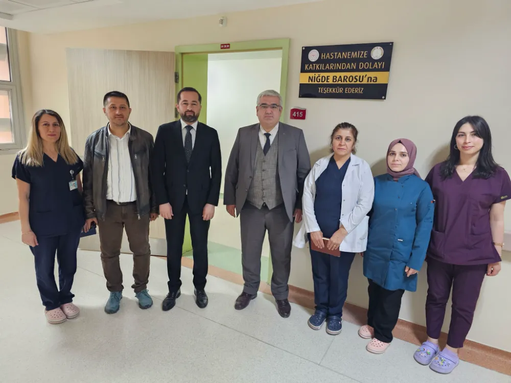 Bu vesileyle, Sağlık çalışanları adına; hak ve adaletin teminatı olan tüm avukatlarımızın 5 Nisan Avukatlar Günü’nü en içten dileklerimizle kutluyor, hastanemize yapılan katkılarından dolayı Niğde Baro Başkanlığımıza teşekkür ederek, çalışmalarında başarılar diliyoruz” denildi.