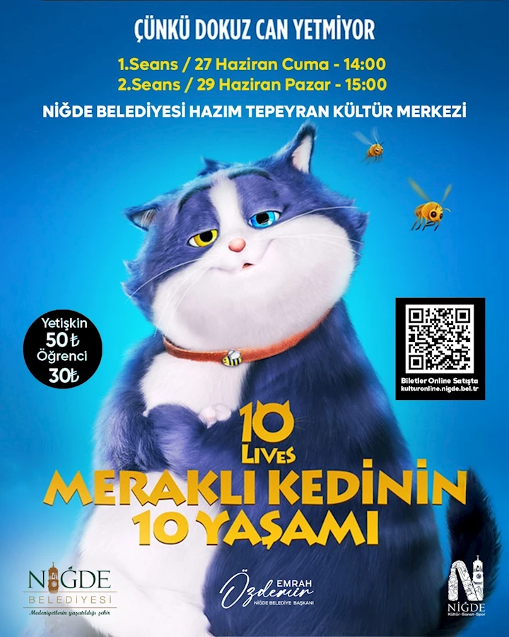 Filmlere biletler “kulturonline.nigde.bel.tr” adresinden temin edilebilecek. Çocuk biletleri 30 TL, yetişkin biletleri ise 50 TL fiyatıyla satışa sunuldu.