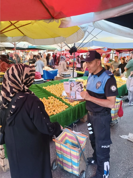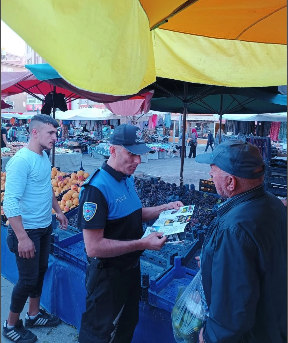 Çalışmalar kapsamında, halkın yoğun olarak bulunduğu pazar yerleri ve Bankalar Caddesi ziyaret edilerek, vatandaşlara genel güvenlik, hırsızlık, iletişim yoluyla dolandırıcılık, sahte para, yankesicilik ve açıktan hırsızlık konularında bilgilendirme yapıldı. Ekipler, bilgilendirme sırasında el broşürleri dağıtarak vatandaşların dikkatli ve bilinçli hareket etmesini sağladı.
