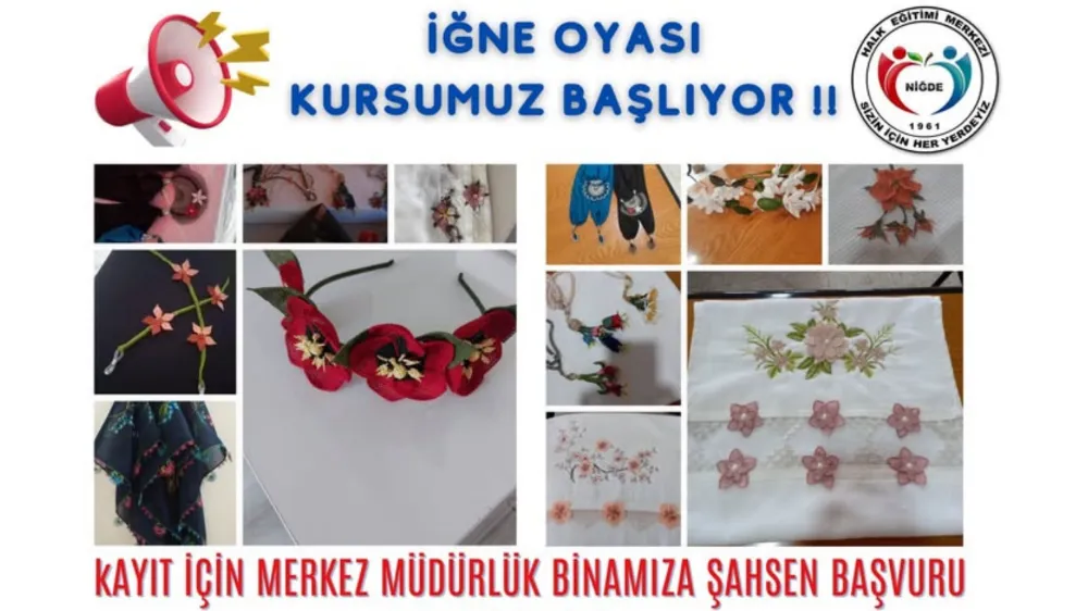 Niğde Halk Eğitimi Merkezi, iğne oyası sanatını öğrenmek ve geliştirmek isteyenler için yeni bir kurs düzenliyor. Kurs kapsamında katılımcılar, iğne oyasının inceliklerini öğrenerek el becerilerini ilerletebilecek.