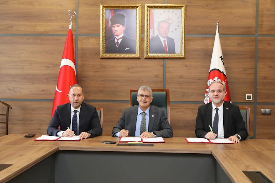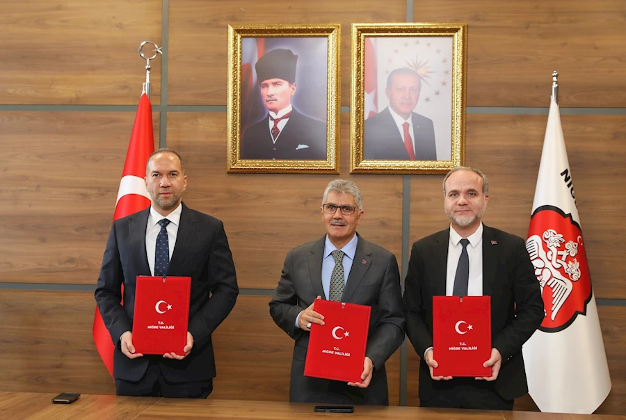NÖHÜ Rektörü Uslu, Niğde Valisi Cahit Çelik ve Niğde Belediye Başkanı Emrah Özdemir ile bir araya gelerek "Coğrafi Veri Altyapısı ve Akıllı Şehir Teknolojileri Geliştirme İş Birliği Protokolü"nü imzaladı.