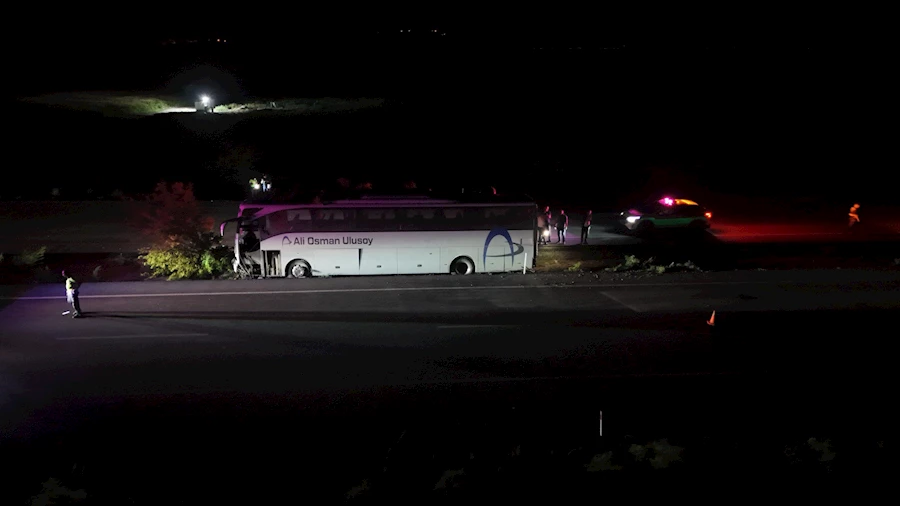Otobüste 44 kişinin bulunduğu öğrenilirken, kazayla ilgili soruşturma başlatıldı. Kaza yeri dron ile havadan görüntülendi.
