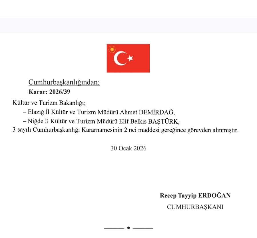 30 Ocak 2026 tarihli ve 2026/39 sayılı Cumhurbaşkanlığı Kararnamesi ile Niğde İl Kültür ve Turizm Müdürü Elif Belkıs Baştürk görevden alındı. Görevden alma işlemi, 3 sayılı Cumhurbaşkanlığı Kararnamesi’nin 2’nci maddesi kapsamında gerçekleştirildi.