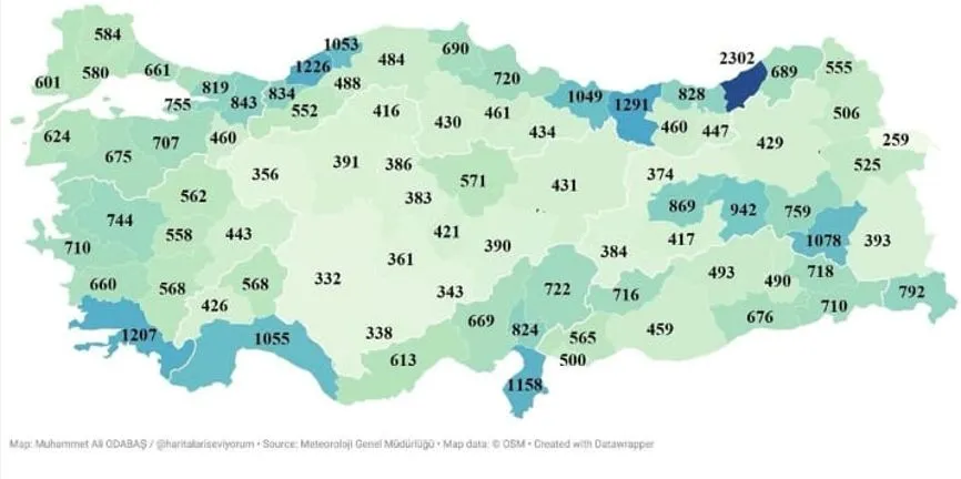 Komşu illerde 2025 yılı itibariyle Nevşehir’e 383 mm, Aksaray’a 361 mm, Kayseri’ye ise 390 mm yağış düşmesi bekleniyor.