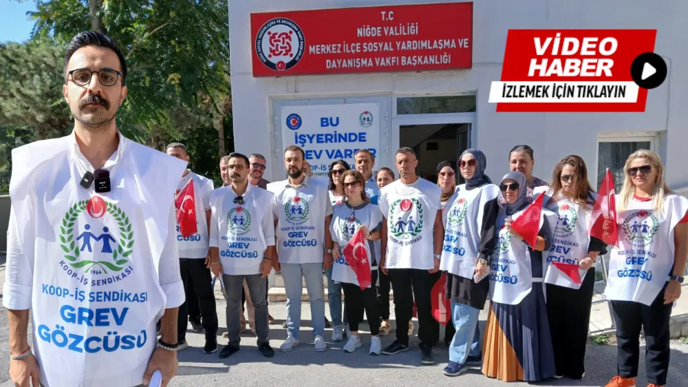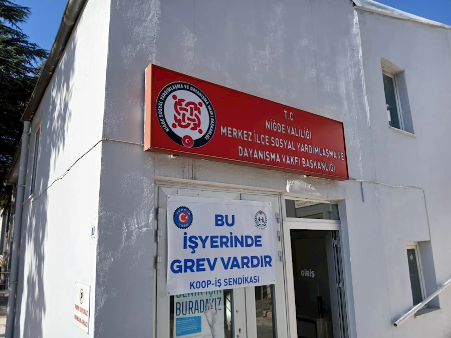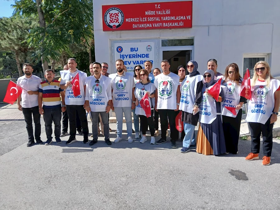 Niğde Sosyal Yardımlaşma ve Dayanışma Vakfı önünde Sendika adına açıklama yapan Sosyal Yardım ve İnceleme Görevlisi Naci Akçakaya, “Emeğimiz görmezden geliniyor, alın terimizin karşılığını istiyoruz. Zafer, direnen emekçinin olacaktır” dedi.
