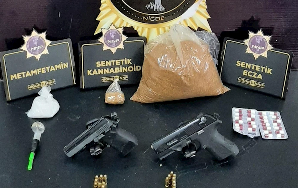 Niğde İl Emniyet Müdürlüğü Narkotik Suçlarla Mücadele Şube Müdürlüğünce yapılan operasyonda tam 1 kilo 511 gram sentetik kannabinoid maddesi ele geçirildi. Niğde İl Emniyet Müdürlüğü Narkotik Suçlarla Mücadele Şube Müdürlüğünce, sokak satıcılarına yönelik yapılan operasyonda 1 şüpheli yakalanarak gözaltına alındı. Şüpheliye ait çantada yapılan aramada 1 kilo 511 gram sentetik kannabinoid maddesi, 63,50 gram metamfetamin maddesi, 26 adet reçeteye tabi sentetik ecza, 1 adet uyuşturucu kullanımında kullanılan cam aparat, 2 adet ruhsatsız tabanca ve 21 adet mermi ele geçirildi. Şüpheli hakkında adli işlem başlatıldı.