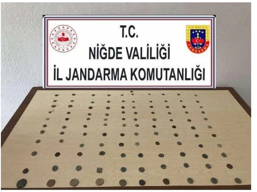 Niğde İl Jandarma Komutanlığı ekiplerince; Kaçakçılık Olayları kapsamında, Nevşehir ilinden tarihi sikke getireceği duyumu alınan şüpheli şahsın aracı, Niğde İli Merkez İlçesi Ağcaşar Köyünde durdurulmuş olup, yapılan kontrolde araç içerisine gizlenmiş vaziyette (111) adet tarihi sikke ele geçirildi. Şahıs gözaltına alınarak hakkında adli işlem başlatıldı.