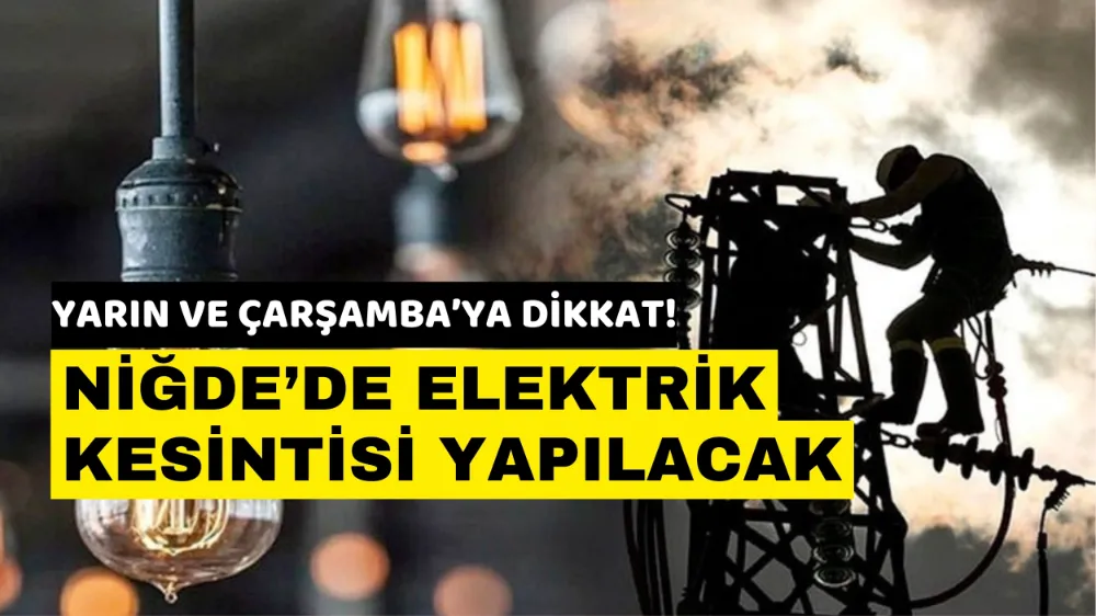 18 Ağustos Çarşamba günü saat 09.00 ile 10.00 arasında kapsamlı bakım nedeniyle; Niğde Merkez Cumhur Sokak, Niğde Merkez Gazeteci İsmet Sayın Caddesi Caddesi, Niğde Merkez Aşağı Kayabaşı Mahallesi Adil Sokak, Niğde Merkez Aşağı Kayabaşı Mahallesi Ceren Sokak, Niğde Merkez Aşağı Kayabaşı Mahallesi Cumhur Sokak, Niğde Merkez Aşağı Kayabaşı Mahallesi Dr.Sami Yağız Caddesi, Niğde Merkez Aşağı Kayabaşı Mahallesi Gazeteci İsmet Sayın Caddesinde planlı elektrik kesintisi yaşanacak.