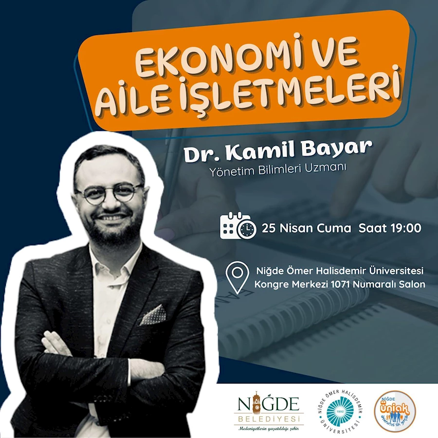 Niğde Belediyesi ve Niğde Ömer Halisdemir Üniversitesi işbirliği ile Yönetim Bilimleri Uzmanı Dr. Kamil Bayar’ın sunumuyla “Ekonomi ve Aile İşletmeleri” konulu konferans düzenlenecek. 25 Nisan Cuma Günü Saat: 19:00’da başlayacak olan konferans, Niğde Ömer Halisdemir Üniversitesi Kongre Merkezi Salon 1071’de gerçekleştirilecek.