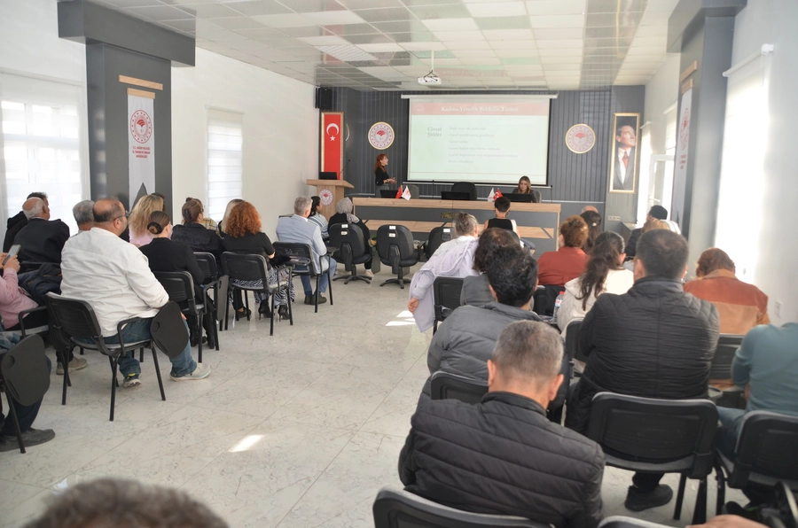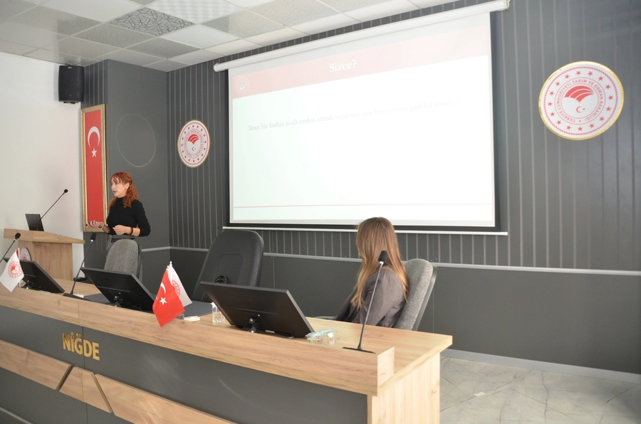 Niğde İl Tarım ve Orman Müdürlüğü, kadına yönelik şiddetle mücadeleye dikkat çekmek amacıyla farkındalık eğitimi düzenledi. İl Müdürlüğü toplantı salonunda gerçekleştirilen programda, Aile ve Sosyal Hizmetler İl Müdürlüğü’ne bağlı Şiddet Önleme ve İzleme Merkezi (ŞÖNİM) uzmanları Psikolog Büşra Erdal ve Münevver Seda Akdemir tarafından katılımcılara kapsamlı bir eğitim verildi.