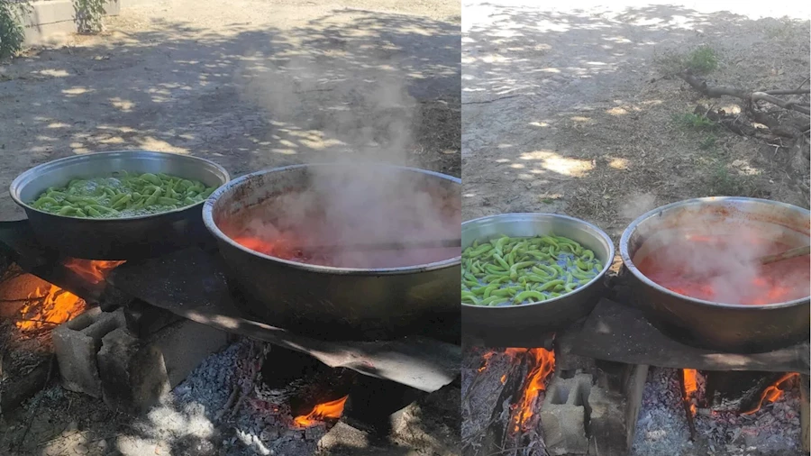 Niğdeli kadınlar, bahçelerine kurdukları büyük kazanlarda ev yapımı salça hazırlıklarının ardından acılı sos yapımına başladılar. El emeğiyle yapılan bu lezzet hem kış sofralarını süslüyor hem de aileleri bir araya getiren keyifli bir gelenek haline geliyor.