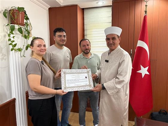 Merasimin sonunda Müftü Hüseyin Gün, Alyona KILIÇ’a ihtida belgesi takdim etti. Ayrıca kendisine bir Kur’an-ı Kerim ve ilmihal hediye edilerek hayırlı temennilerde bulunuldu.