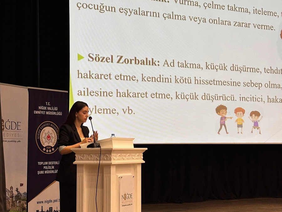 Bor Sosyal Hizmet Merkezi Müdürlüğü’nde görev yapan Psikolojik Danışman Fatma Tekcan Doğan tarafından yürütülen eğitimde, 7-18 yaş aralığındaki öğrenciler akran zorbalığı konusunda bilgilendirildi. Programda, zorbalığın çeşitleri, etkileri ve karşılaşılması durumunda alınabilecek önlemler anlatıldı.