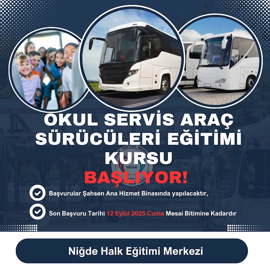 Niğde Halk Eğitimi Merkezi, öğrencilerin güvenli ulaşımı için “Okul Servis Araç Sürücüleri Eğitimi Kursu”nu başlatıyor.