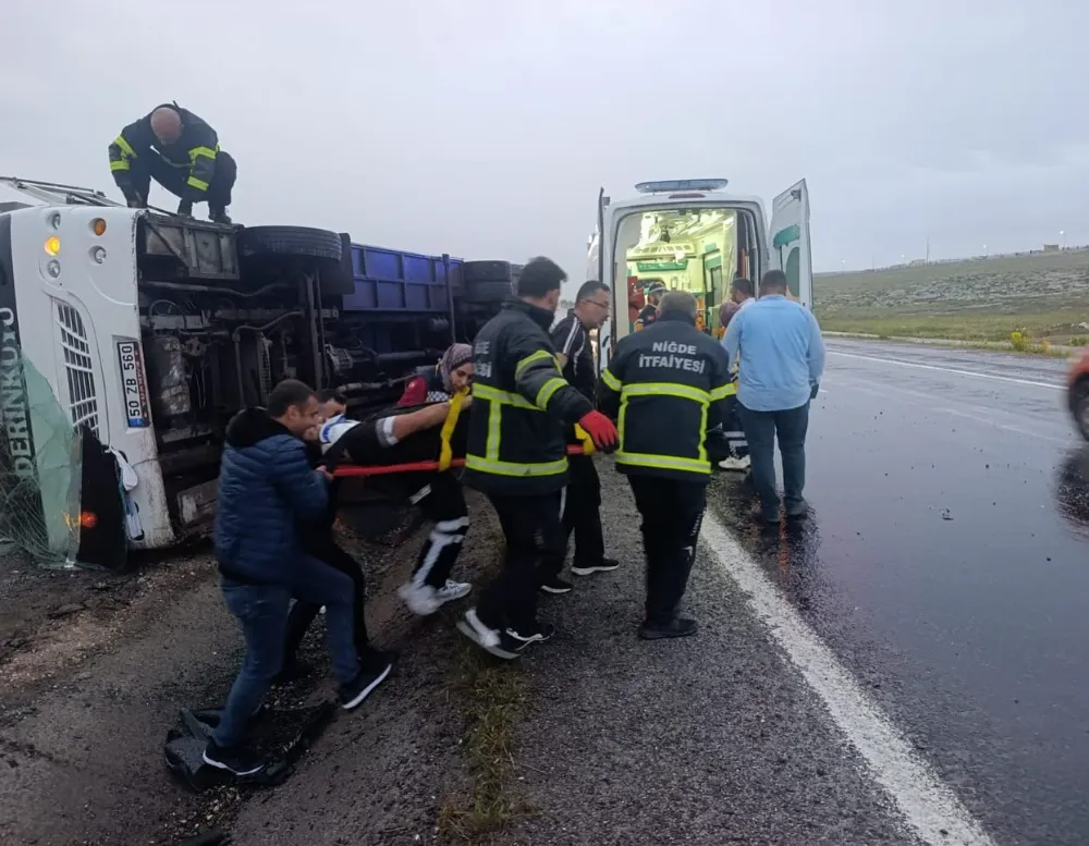 Edinilen bilgilere göre, Niğde-Nevşehir karayolunda seyir halinde olan bir yolcu otobüsü, sürücüsünün direksiyon hakimiyetini kaybetmesi sonucu devrildi. Bölgede etkili olan yağışlı havanın yolun kayganlaşmasına neden olduğu ve bu durumun kazanın meydana gelmesinde etkili olduğu belirtildi.