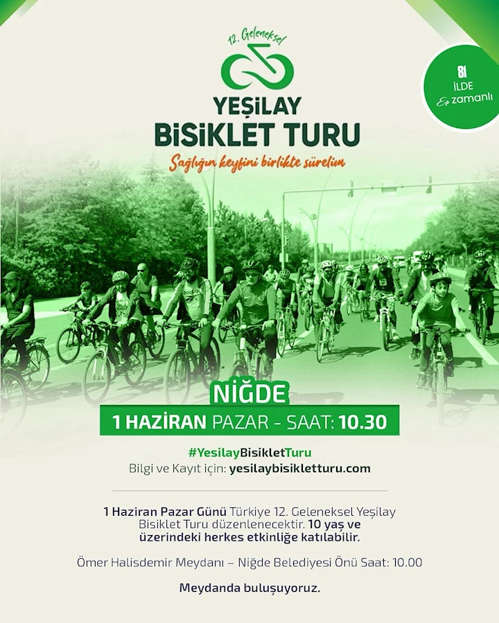 Niğde, 1 Haziran Pazar günü önemli bir etkinliğe ev sahipliği yapmaya hazırlanıyor. Yeşilay'ın 12. Geleneksel Bisiklet Turu, Türkiye genelinde 81 ille eş zamanlı olarak Niğde'de de gerçekleşecek.