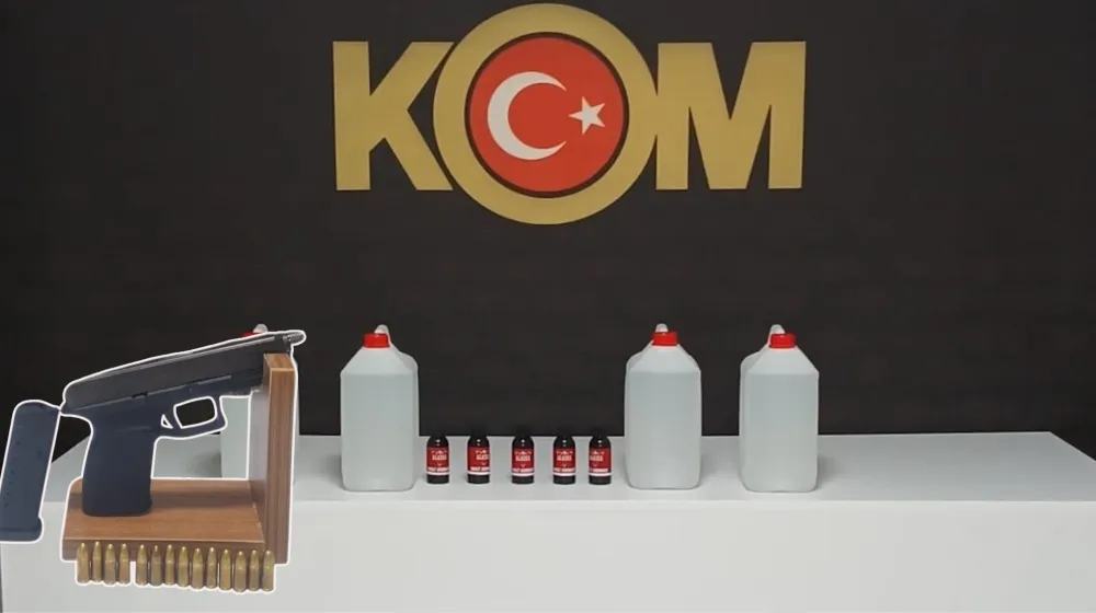 Operasyon kapsamında etil alkol, alkol yapım kitleri ve ruhsatsız tabanca ele geçirildi.