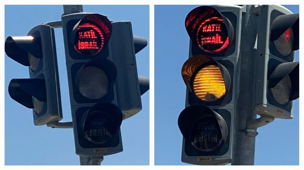 Niğde merkez Efendibey Mahallesi’nde bulunan trafik ışıklarına “Katil İsrail” ve “Özgür Filistin” ifadelerinin yansıtılması dikkat çekti.