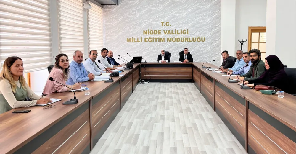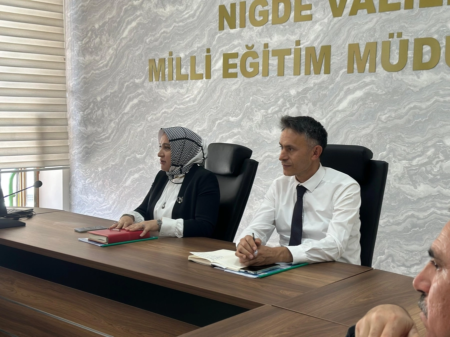 Niğde İl Milli Eğitim Müdürü Elif Özbek, İl Müdür Yardımcısı Ramazan Gün ile birlikte 2025-2026 eğitim-öğretim yılında il genelindeki tüm okullarda uygulanacak proje hakkında temel eğitime bağlı köy okulları ve ortaöğretime bağlı lise müdürleriyle bir araya geldi.